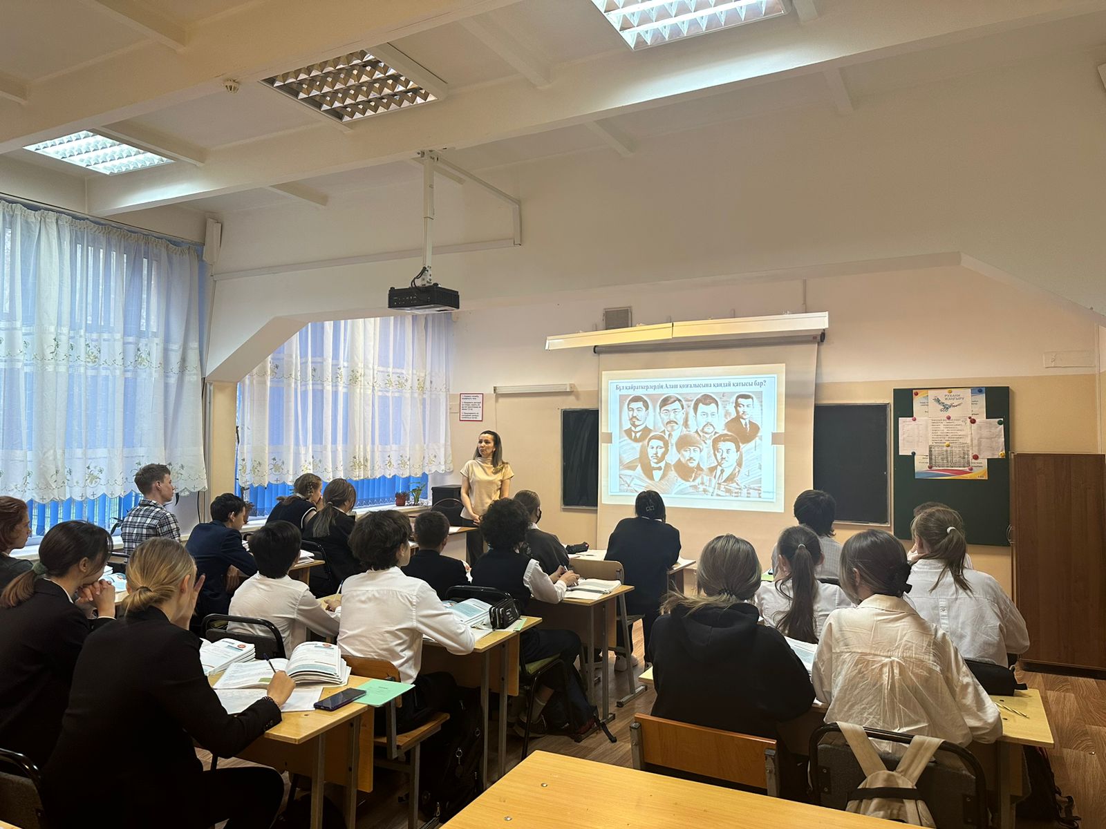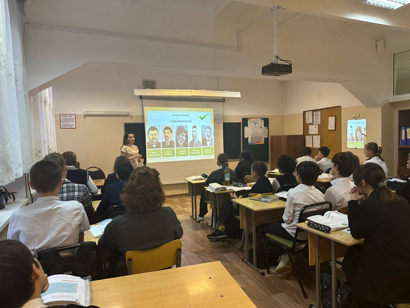 №116 ЖББМ 7,9 -сынып оқушыларына егемен ел, тәуелсіз мемлекет болу жолында өмірін сарп еткен Алаш қозғалысының қайраткерлерімен, Алаш арыстарының өмірі, қоғамдық қызметі мен шығармашылығымен тыныстыру мақсатында ашық тәрбие сағаты өткізілді.