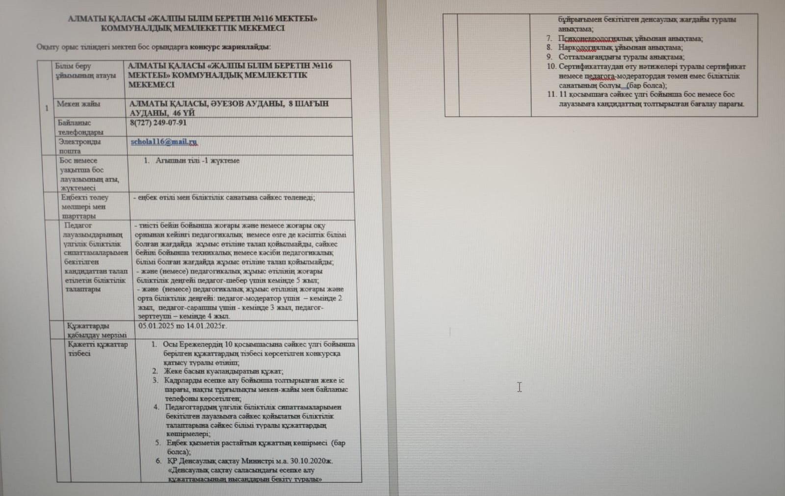 05 январь 2025 0 1 2 3 4 5 Оқыту орыс тіліндегі мектеп бос орындарға конкурс жариялайды/ Объявляет конкурс на вакантные должности с русским языком обучения Осы беттің QR-коды:QR-код этой страницы:
