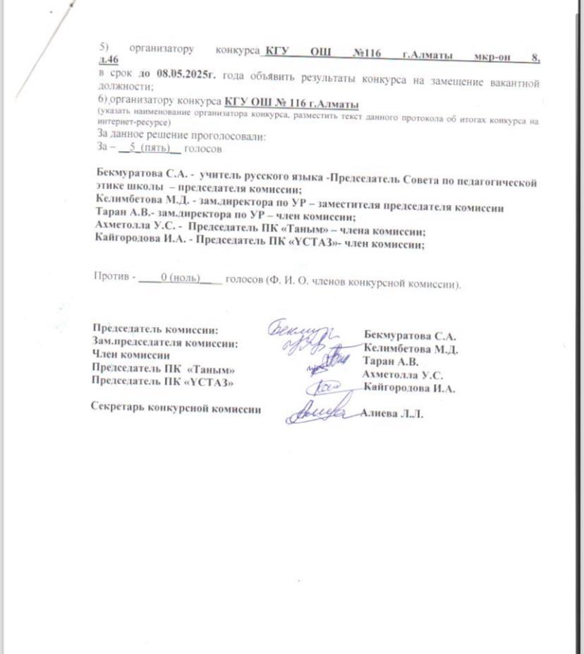Протокол итогов КГУ ОШ №116 01.04.2025
