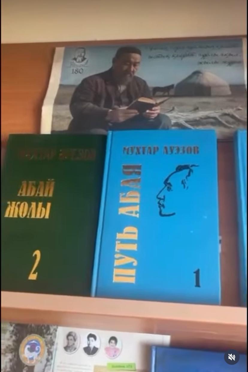 В школе прошла выставка, посвящённая великому казахскому поэту, мыслителю и просветителю Абаю Кунанбаеву. В фойе были оформлены стенды с фотографиями, портретами и материалами о жизни и творчестве Абая. Ученики представили его книги, сборники «Слов назидания», стихотворения и переводы.