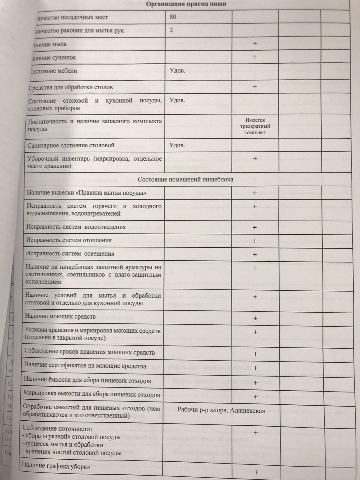 Деятельность в столовой