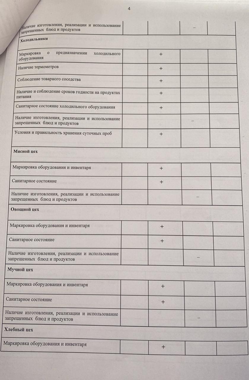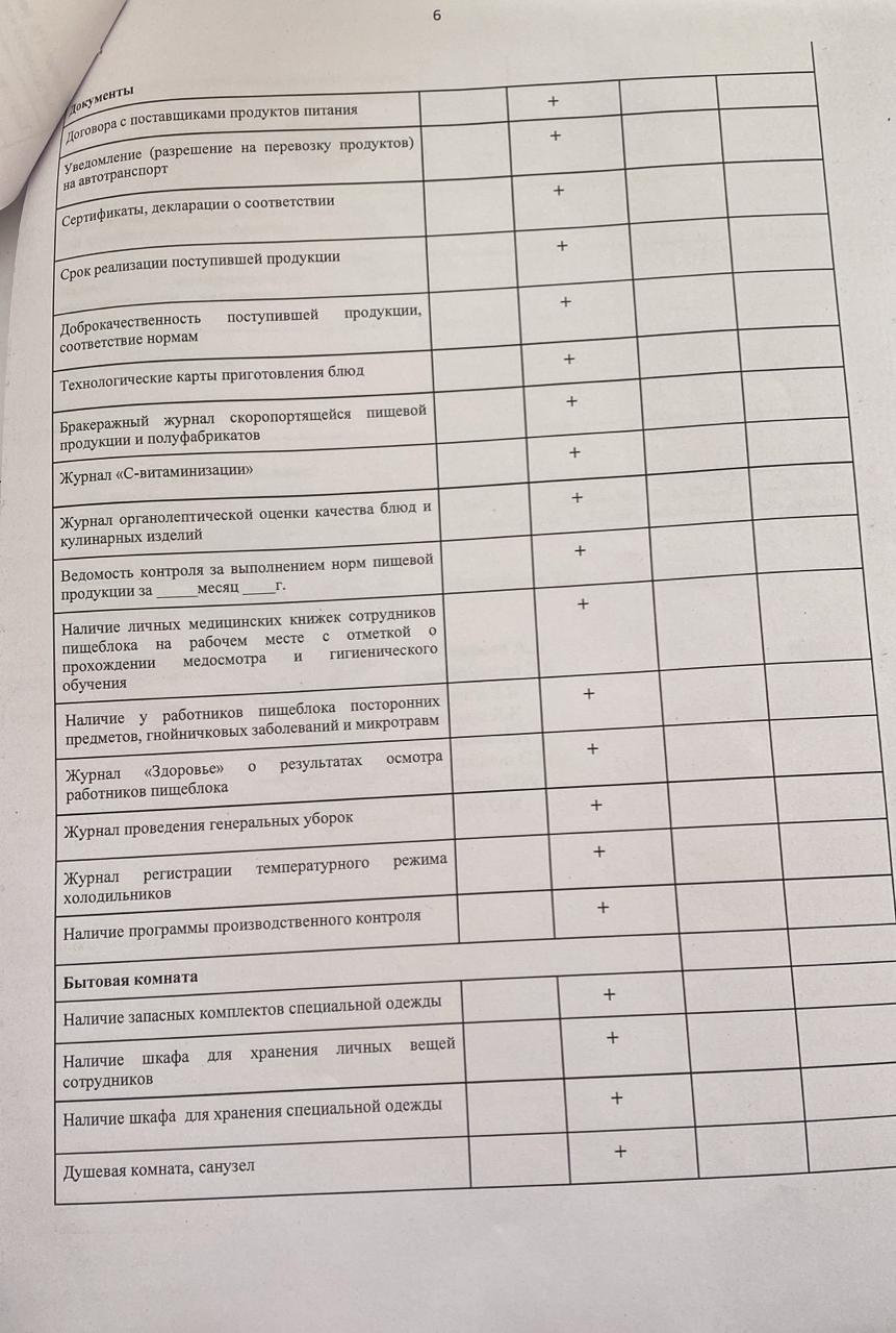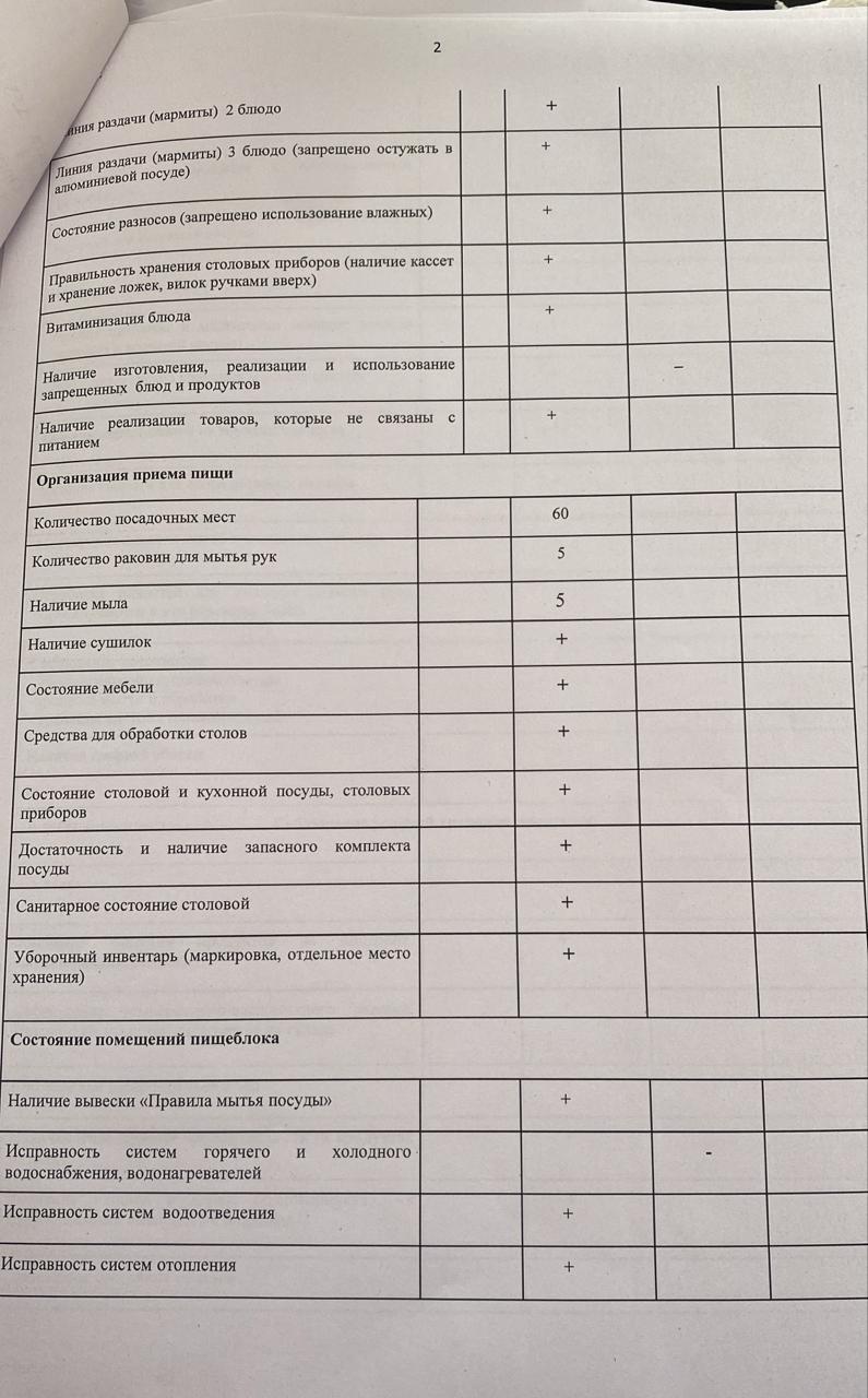 АКТ мониторинга качества питания питания столовой