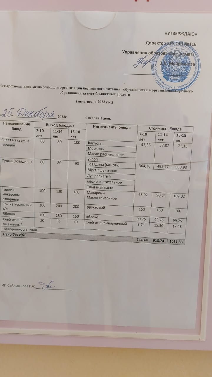 КГУ «Общеобразовательная школа №116» Управления образования г.Алматы