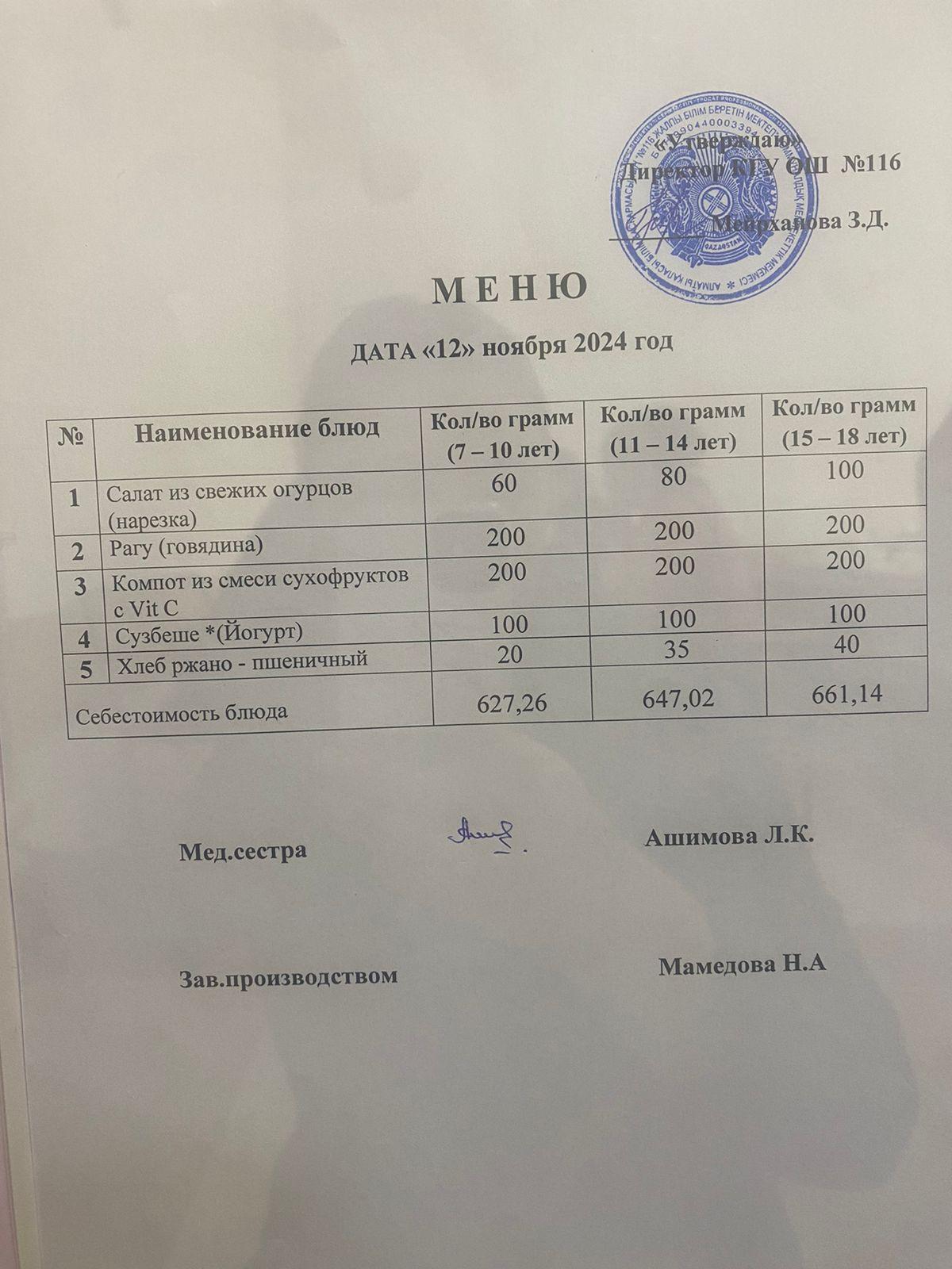 КГУ «Общеобразовательная школа №116» Управления образования г.Алматы