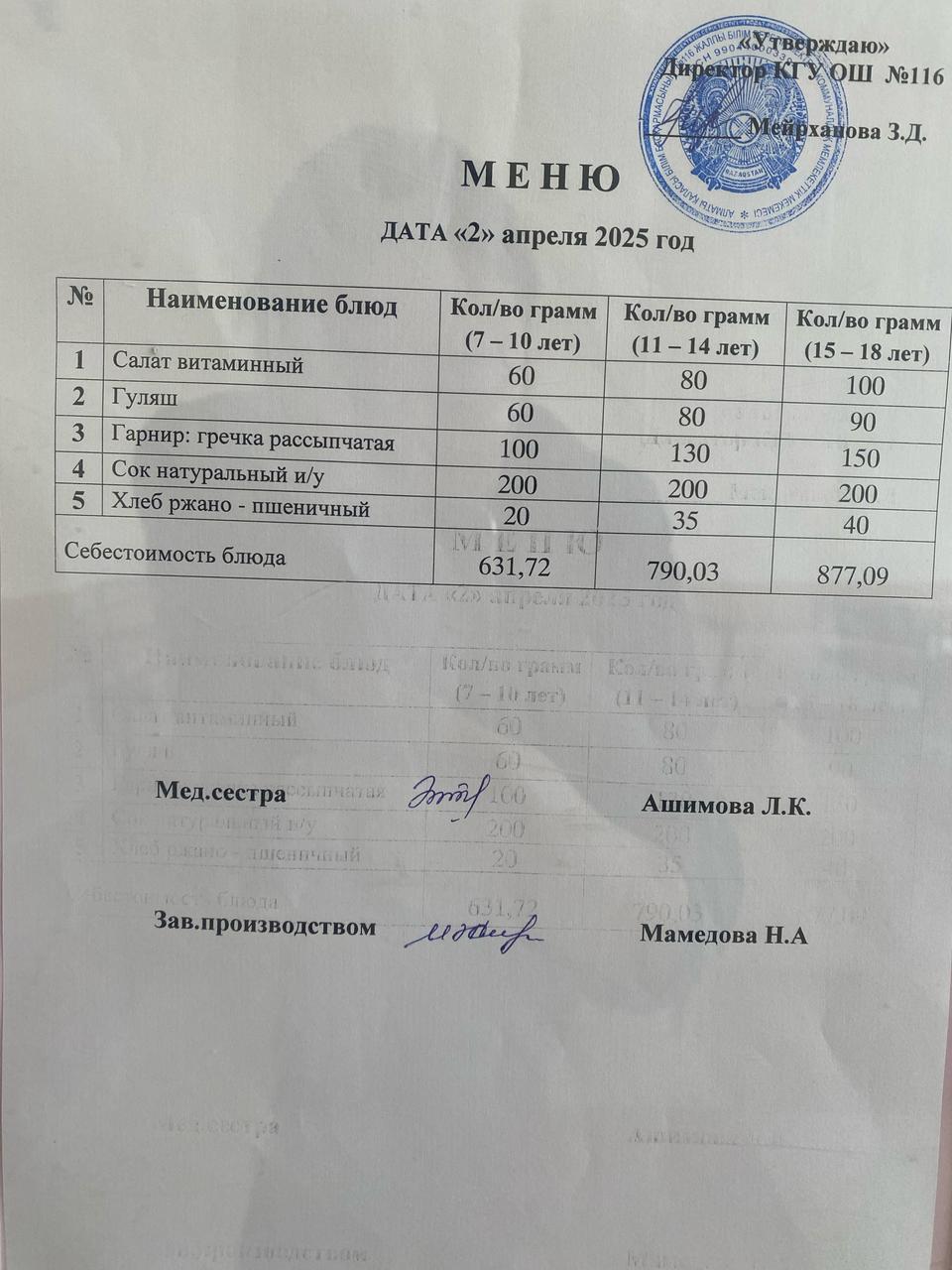 КГУ «Общеобразовательная школа №116» Управления образования г.Алматы