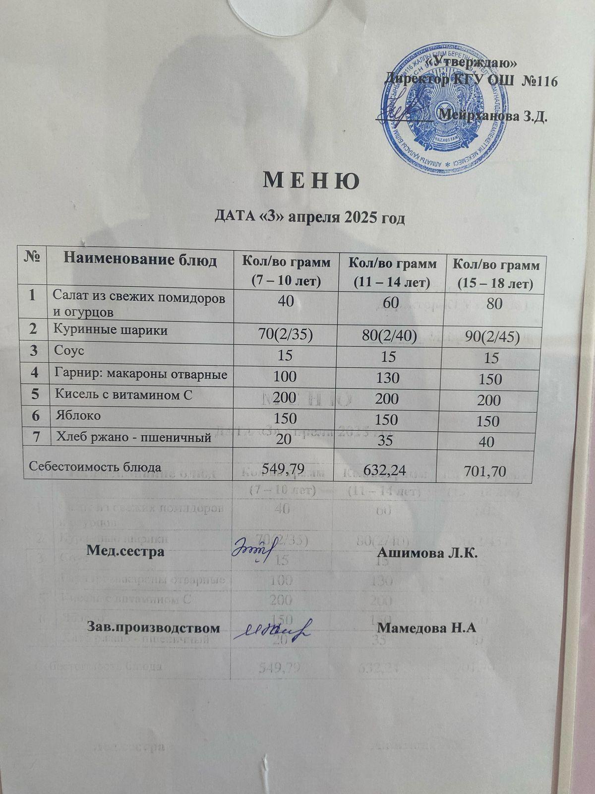 КГУ «Общеобразовательная школа №116» Управления образования г.Алматы