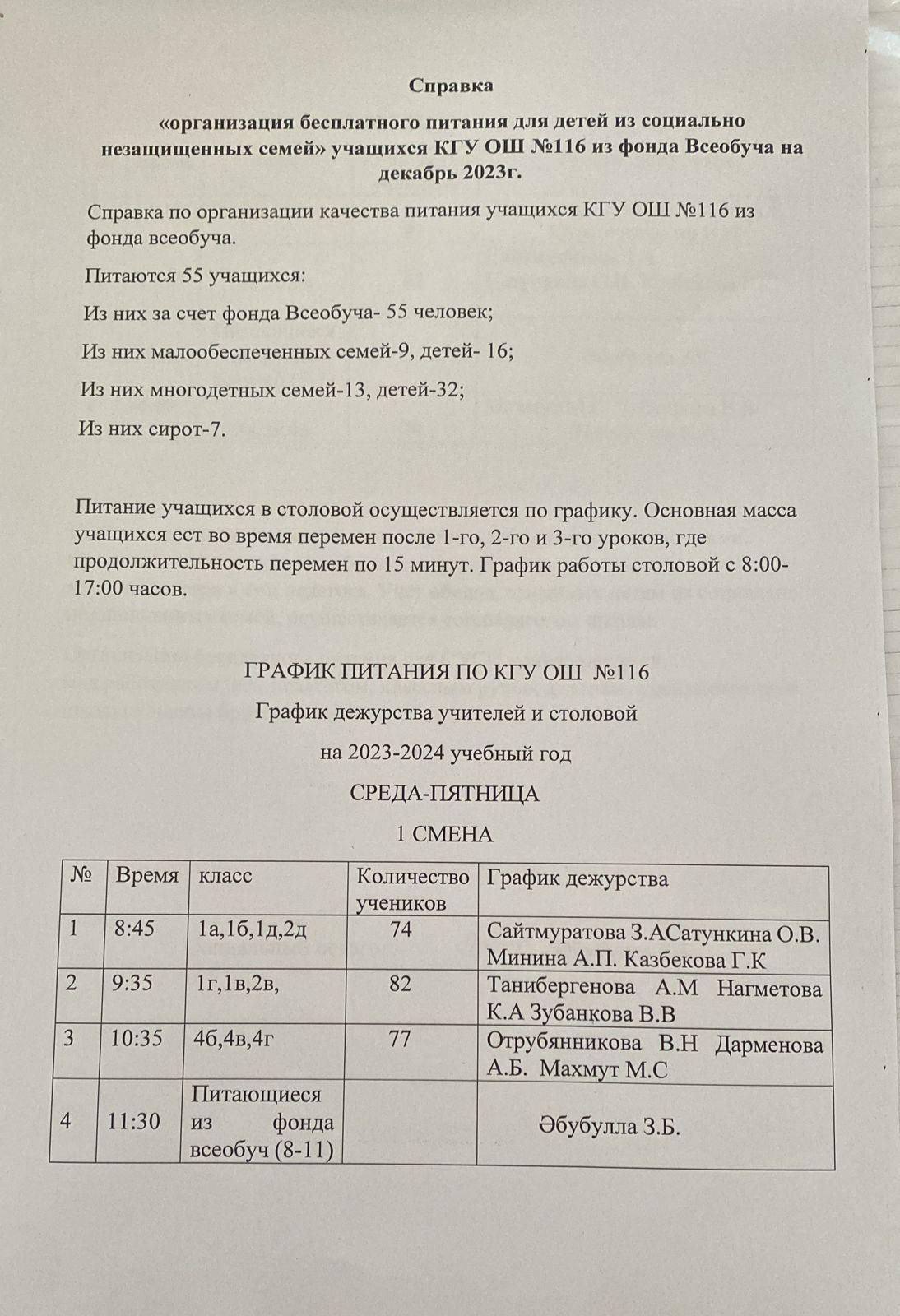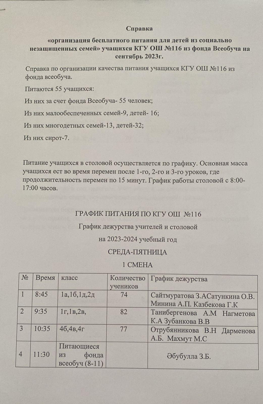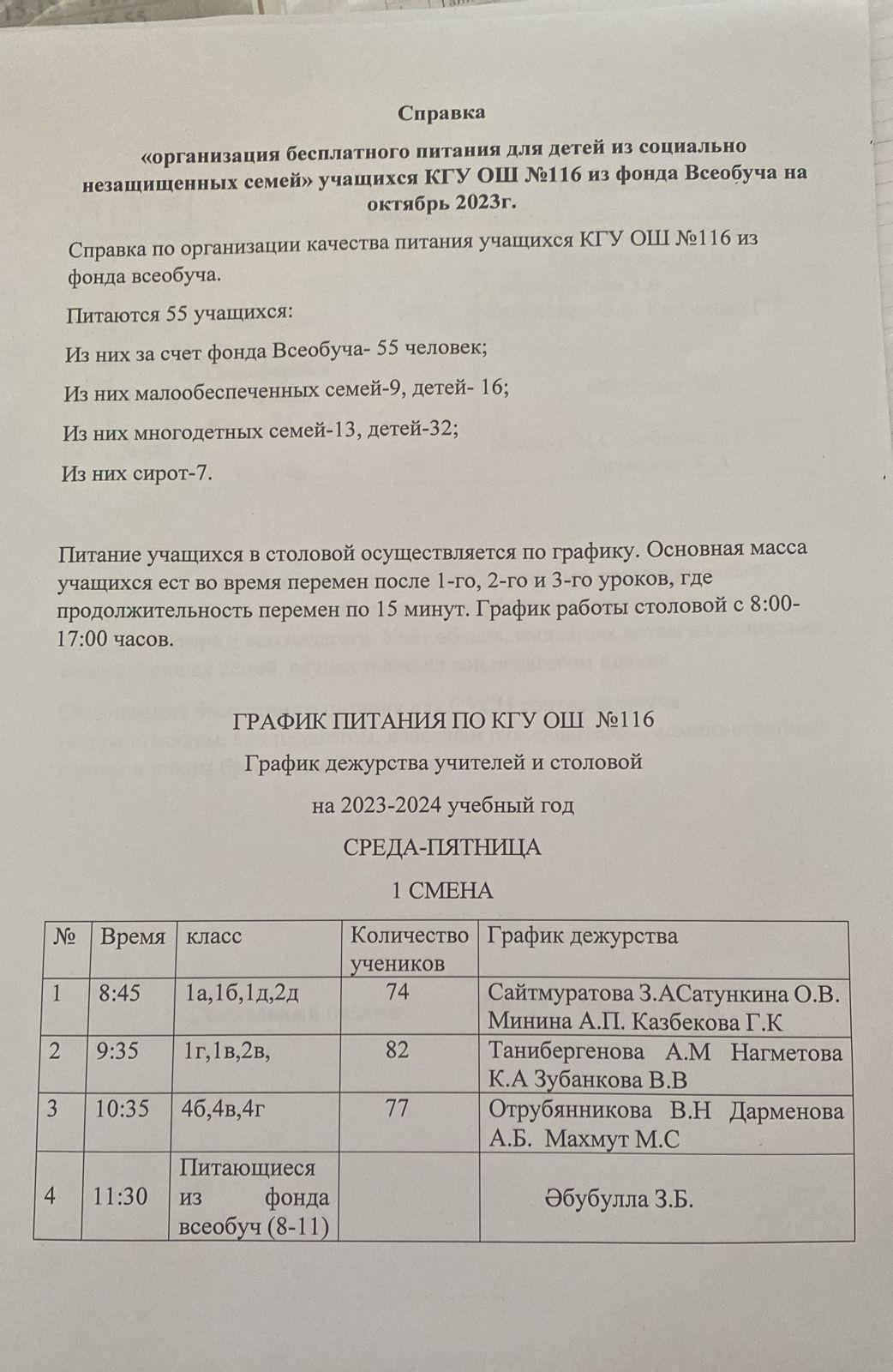КГУ «Общеобразовательная школа №116» Управления образования г.Алматы