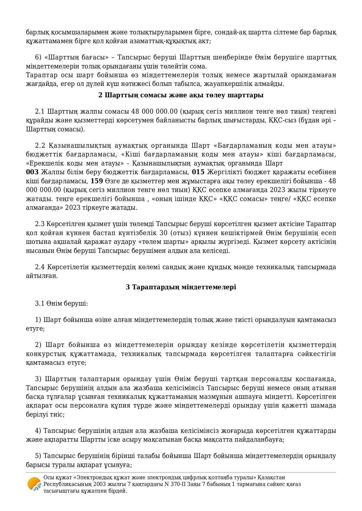 01 сентябрь 2023 0 1 2 3 4 5 Қызмет көрсету туралы шарт/Договор об оказании услуги Осы беттің QR-коды:QR-код этой страницы: